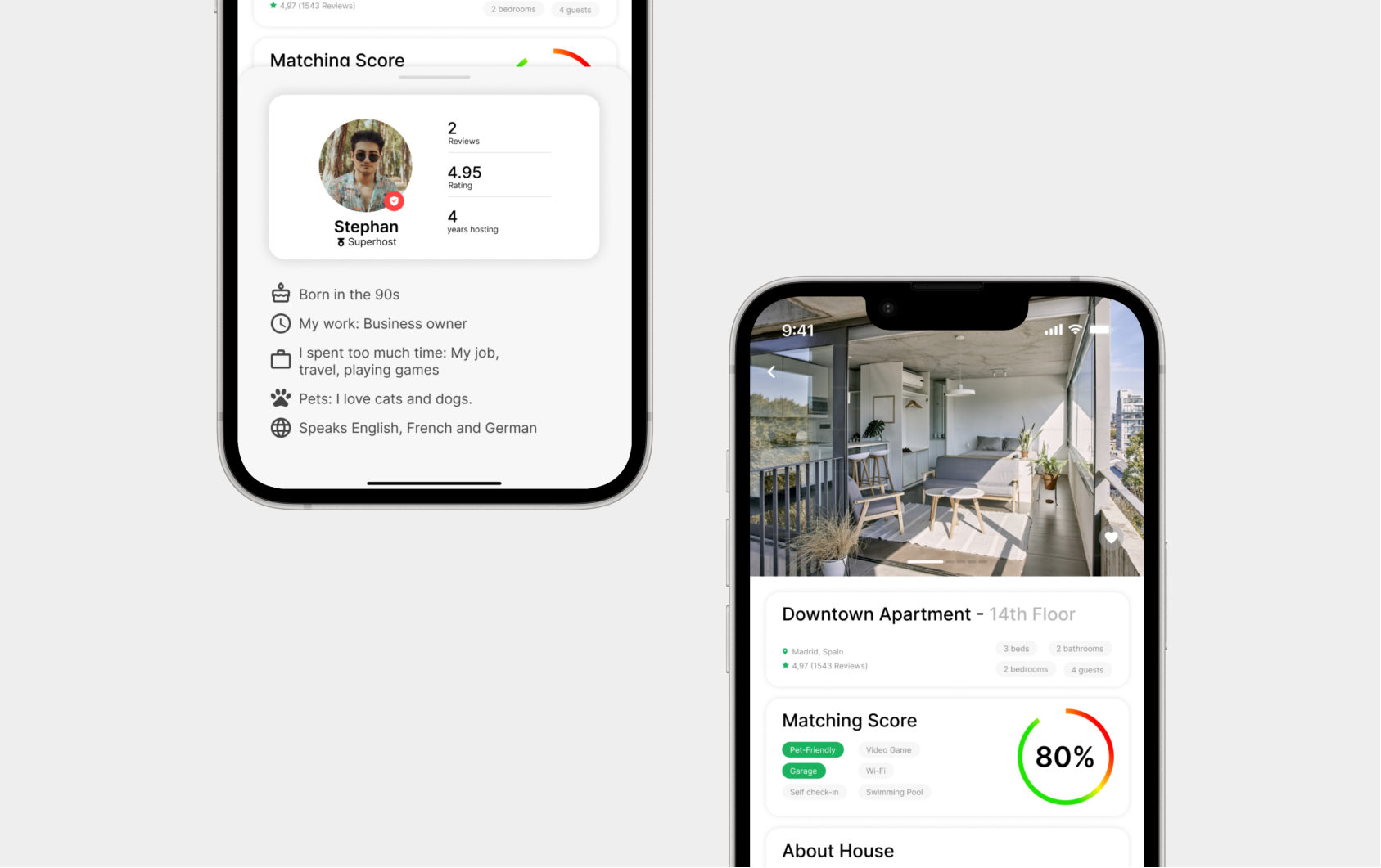 Mobile rental app — smart recommendations, transparent Match Score, proactive notifications.